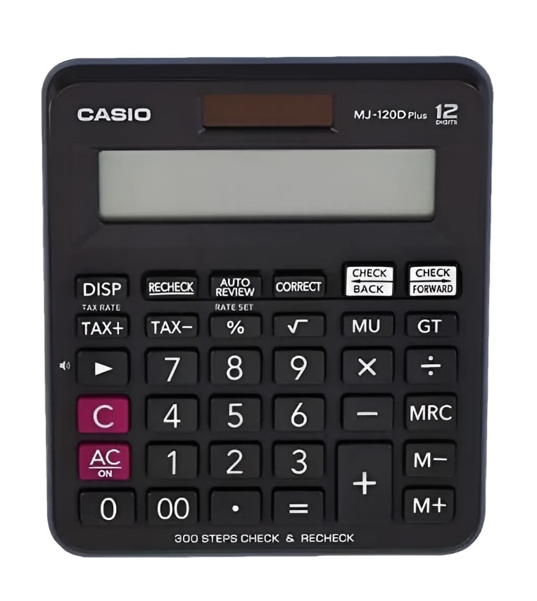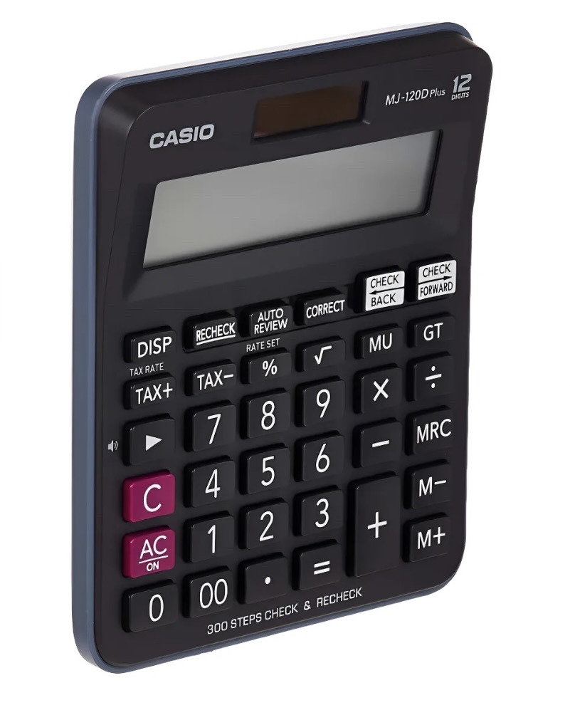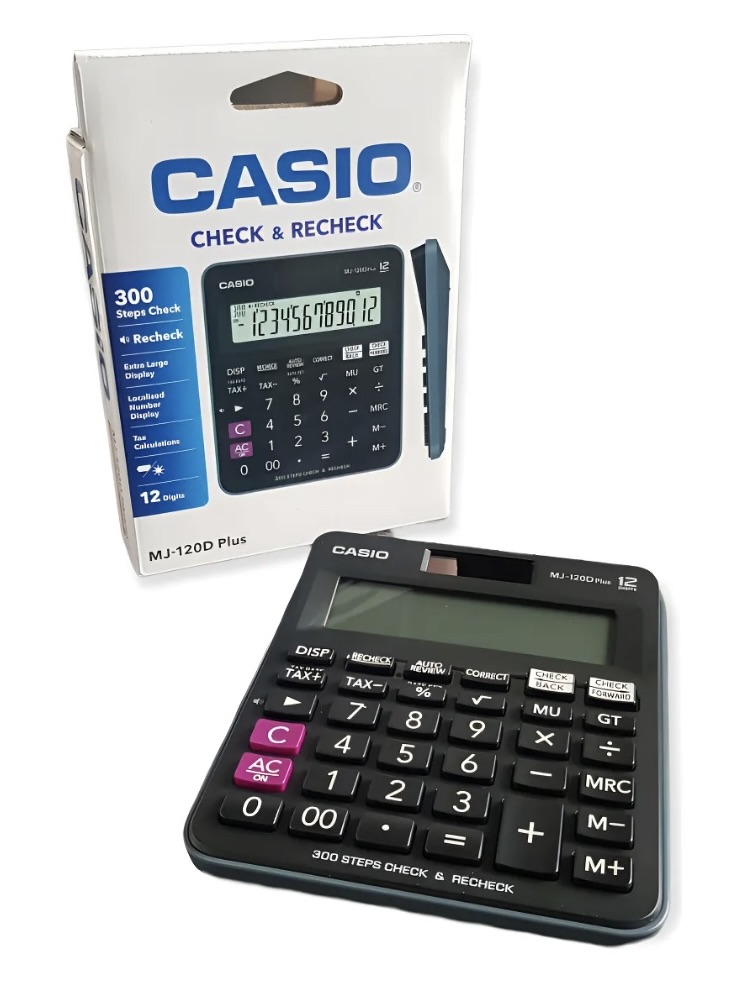 Casio DJ-120D es una calculadora de mesa con tecla Revisión & Auto Revisión - tecla "Ir a función" - tecla de corrección y pantalla LC extra grande de 12 dígitos.